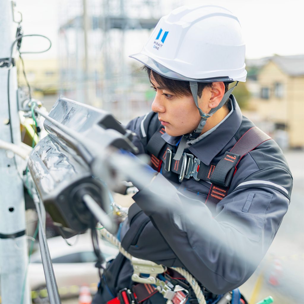スマホやネット、太陽光発電など、今の暮らしに欠かせない設備を「創り、守る」仕事です。