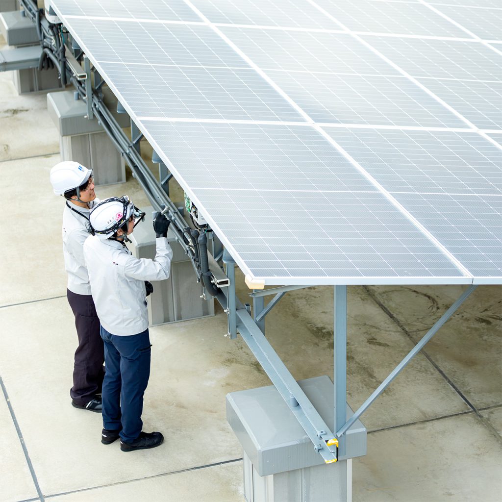 太陽の光をエネルギーに変える「太陽光発電」。未来の街を走るクルマを支える「EV充電設備」。明るく環境にやさしい「LED設備」。私たちが創り上げているのは、ずっと先の未来まで「当たり前」が続くためのサステナブルな仕組みです。