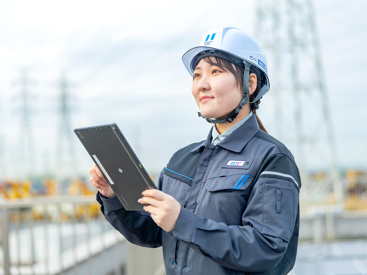 スマホやネット、太陽光発電など、今の暮らしに欠かせない設備を「創り、守る」仕事です。